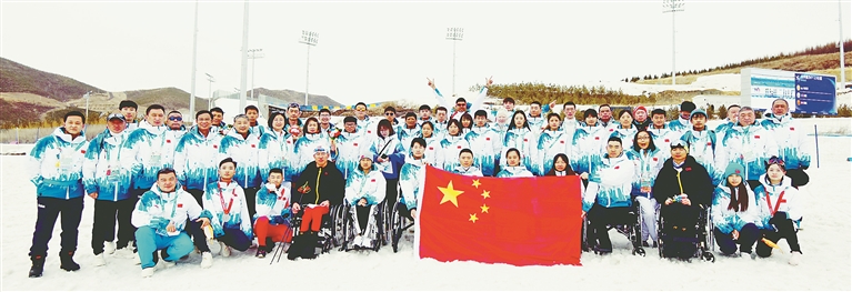 中国冬残奥越野滑雪和冬季两项队合影。宋佳林 黑龙江日报全媒体记者 王彦摄