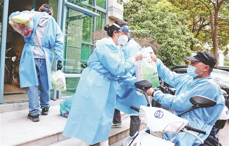 “当前,生活物资保供面临的最大困难是如何送到每家每户。”上海市商务委副主任刘敏介绍,上海正在与超市卖场、电商平台等对接,将生活物资通过集配集送等方式送到社区群众手中,用有限的运力覆盖尽可能多消费者的基本物资需求。