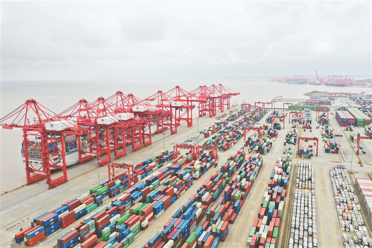 这是4月15日拍摄的上海洋山港集装箱码头(无人机照片)。