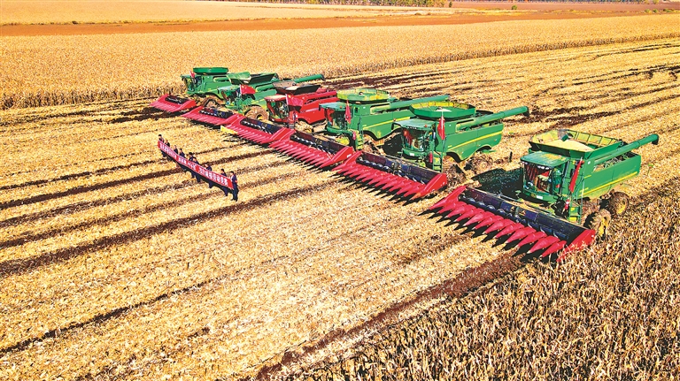 大型农机联合作业。