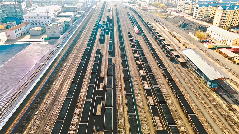 本报讯(刘德才 黑龙江日报全媒体记者狄婕)20日后,我省主要城市哈尔滨、牡丹江、大庆、齐齐哈尔等地相继停止供暖。在长达半年的供暖季,中国铁路哈尔滨局集团公司克服疫情和严寒天气影响,共计运输供暖发电用煤4224万吨,使服务区内34家直供电厂库存煤炭始终保持在15天安全线以上,满足了发电供暖需求,助力居民住上暖屋子。图为中国铁路哈尔滨局集团公司运煤车辆远景。原勇摄