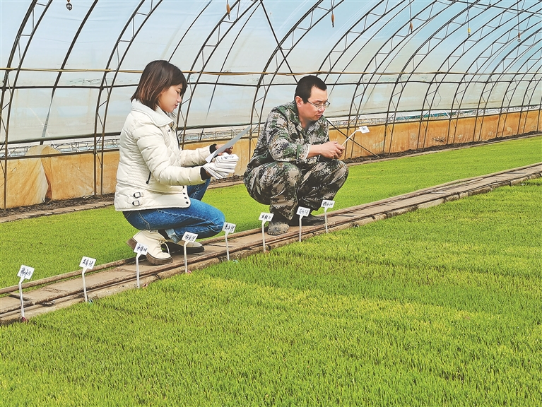 日前,在北大荒农业股份庆丰分公司农业技术推广中心,工作人员正在为处于1.5叶期的水稻秧苗插上一个个白色“名片”,上面标注了水稻秧苗的品种。“这样能直观地了解各品种的生长特性,可为筛选出适合本地区种植的水稻品种提供数据支持。”工作人员说。