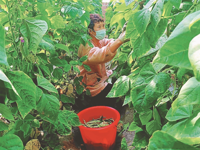 日光从棚顶洒下,整栋温室大棚内暖意融融,绿意盎然。23日上午9时,哈尔滨市道外区团结镇东风村村民马玉兰正和同村姐妹采摘已经成熟的豆角。下午时分,一筐筐豆角装车后,通过村内开辟的农用“绿色通道”进城销售。