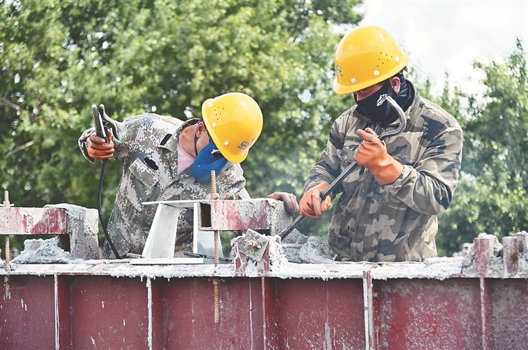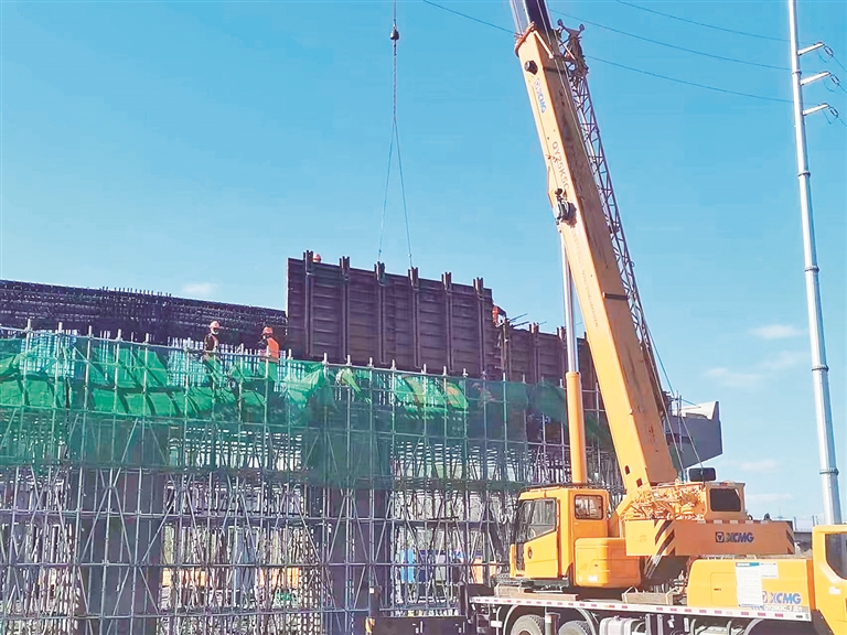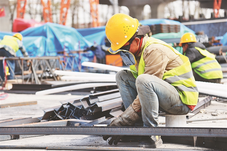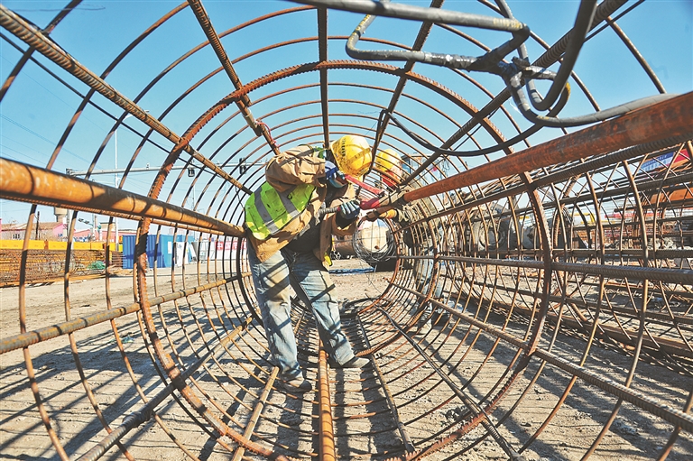 焊花飞溅、工程车来回穿梭……走进省级重点项目——北门街高架桥工程建设现场,施工人员有的绑钢筋,有的辅助机器打桩,钻头飞转,施工热火朝天。