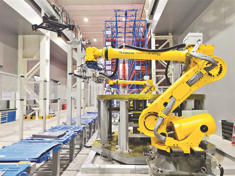 哈电集团电机公司智能叠片间机器人自动叠片生产线。资料片
