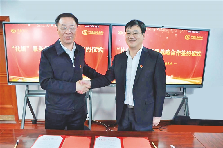 兴业银行哈尔滨分行党委书记、行长丁武民(左) 在“红色合伙人”签约仪式上