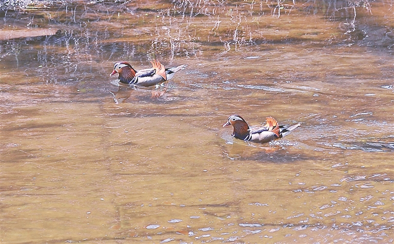 9日,哈尔滨市香坊区哈平路附近的马家沟河面上,四只野生鸳鸯在清澈的水中游弋、觅食,成为当地一道风景,吸引了许多市民驻足观看拍照。随着城市生态环境的不断改善以及人们爱鸟护鸟意识的提高,越来越多的野生鸟类出现在城市里的公园、内河等地方。黑龙江日报全媒体记者 苏强摄