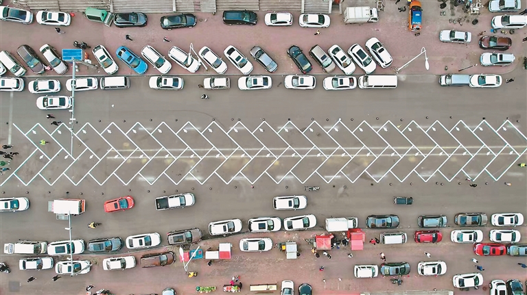 交警部门深入香坊区华北路现场调研,利用中间区域,制定了中间两排“麦穗式”斜列停车泊位、两侧平行式停车泊位、两侧通道预留宽度4.5米的规划方案。据了解,施划“麦穗式”停车泊位后,不但减少了车辆进出停车位时间,而且预留的通道和两侧调头口,有效保障应急通道的畅通,最大限度的利用道路空间,缓解了香坊区华北路附近小区周边居民的停车难问题。下一步,交警部门还将在全市范围内持续优化停车资源,同时还将对有位不入、不按方向停放、斜列式停车、多排停车等交通违法进行规范治理,全力维护安全、有序的交通环境。