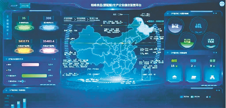 省市场监管局在信息数据库的基础上建设了信息监管平台,实现远程数据报备、动态示警、统计查询、数据分析等功能,提升监管质效。该平台具有三大特点:界面直观,在信息监管平台内电子地图中,可以通过红、黄、绿等风险等级颜色,直接发现高风险企业;操作便利,可及时掌握婴配粉生产企业许可信息、监管信息,以及产能产量等生产信息;内容精准,能直接查找企业主要原辅料供应商、规格等信息,有针对性地排查风险。