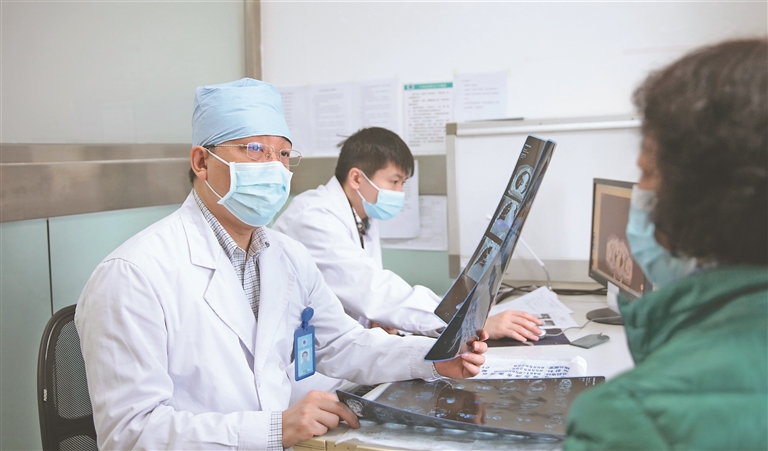 医生正在为患者阅片。黑龙江日报全媒体记者 霍营摄
