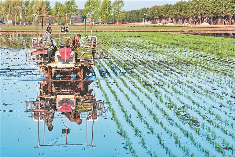 近几年,七星分公司重点开展机插侧深施肥、智能节水灌溉、智能叶龄诊断、水稻分段收获等多项实用性技术的推广与应用,覆盖面积460余万亩,累计为农户增加经济效益5.3亿元。同时推广应用卫星导航辅助直行插秧、割晒机械监测系统、卫星平地等实用性新技术面积达40%以上,对现有10余套平台、系统进行整合,打造一个功能全面的水稻生产智能管控平台。通过推广“水稻标准种植模式”和“水稻高产数字管控模式”,使农业生产由粗放管理向精细管理转变,比2018年亩节本增效100元左右。张景会说,现在地里都是“慧眼”,可实时监测气温、湿度、墒情和作物生长情况,就连买农资、领补贴、贷款都能在网上搞定,太方便了。