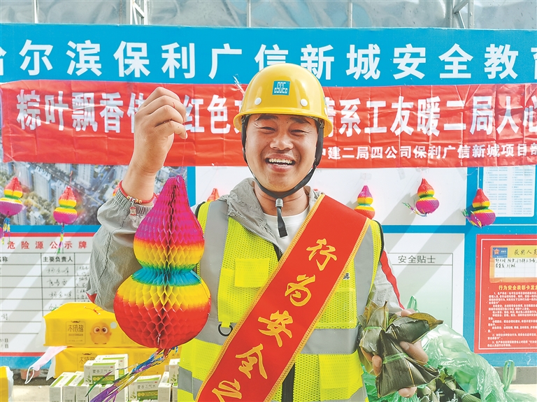 本报讯(袁世卿 黑龙江日报全媒体记者薛婧)端午佳节将至,位于哈尔滨新区的中建二局四公司东北分公司开展丰富多彩迎节日送安康活动,与远离家乡、从五湖四海奔赴到新区的建设者们共迎端午佳节。