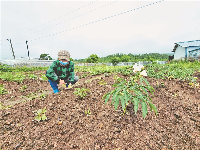 在一些特色民居小院里,栽种着芍药。工作人员说:“我们2020年开始大力发展赤芍栽培深加工产业。村民利用小园种植赤芍,药厂提供芽头。”村民张保义说:“我种植了2.7亩,每年增收5000元呢!”