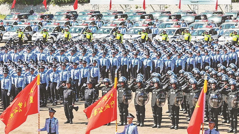 人民警察为人民,服务人民是立警之本。龙江公安坚持以人民为中心,以“道植计划”为牵引,推动全省公安工作高质量发展。深入开展“三打两控一遏制”“首季攻势”“平安之夏”“冬季整训”“核心使命-2022”系列战役等各类专项行动,坚决捍卫国家政治安全;深入推进“能力作风建设年”活动扎实开展,在深化思想解放上“破坚冰”、在狠抓工作落实上“见成效”、在规范执法司法上“再聚焦”,以作风“破冰”引领能力“突围”;自觉践行以人民为中心的发展思想,坚持和发展新时代“枫桥经验”,深入开展矛盾纠纷排查化解、社会治安整体防控、公共安全常态整治,道路交通事故总量稳中有降;紧盯人民群众反映强烈的突出治安问题,依法严厉打击涉黑涉恶、涉枪涉爆、电信诈骗和“黄赌毒”“食药环”“盗抢骗”等违法犯罪活动,有力维护社会稳定;在新冠肺炎疫情防控一线,龙江公安从国门边境到街巷社区,巡防检查、流调溯源、保障民生,筑起了一道道坚实的防疫屏障。