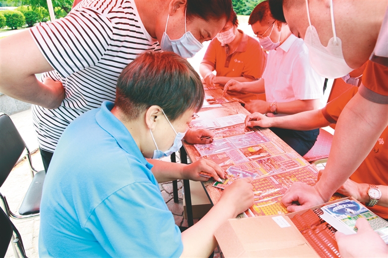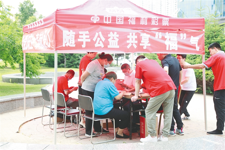 13时,在印有“中国福利彩票”字样的遮阳伞下,省福彩中心40名党员热情地向过往市民宣讲福彩公益属性,为购彩者们耐心解读刮刮乐彩票玩法。红色宣传条幅上“随手公益 共享‘福’气”“为党庆生 奉献爱心”字样,传播着福彩文化的魅力。购彩者们脸上洋溢的笑容,展示着福彩游戏的乐趣,伞下热闹的氛围吸引了不少过往市民前来一探究竟。当大家了解到本次义卖活动所得的福利彩票代销费,将全部用于“福彩爱心基金”,为社会弱势群体提供帮扶救助后,纷纷加入到购彩队伍中来。