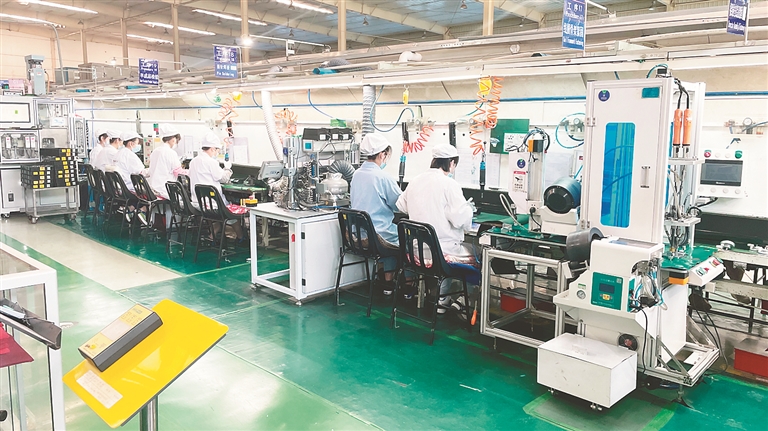 哈尔滨固泰电子有限责任公司的电子线正在进行电路板上关键传感器的自动化焊接。正是这里生产的无触点汽车电子喇叭,2021年国内市场占有率为85.6%,连续多年排名第一,为大众、奔驰、奥迪等知名企业配套。