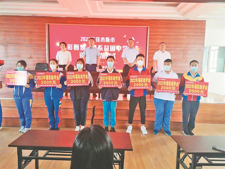 佳木斯市福彩中心举行“福彩圆梦”资助金发放仪式。