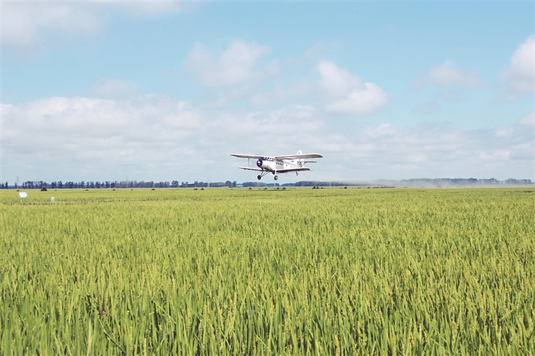 八五七农场有限公司水稻航化作业。李凤婷摄