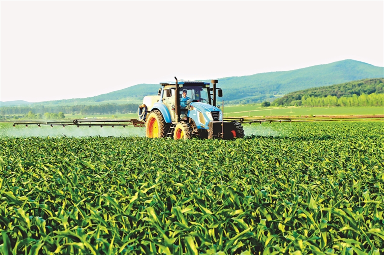 近日,双峰农场有限公司为种养循环地块进行叶面肥喷施作业。目前,这里的作物长势喜人。