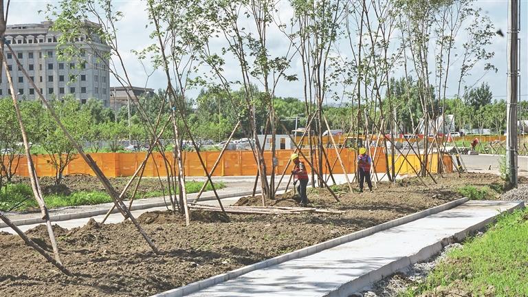 本报讯(王艺凝 黑龙江日报全媒体记者薛婧 黑龙江日报全媒体见习记者董广硕)近日,记者在哈尔滨新区的国贸中央广场项目(一期)建设现场看到,工人们顶着炎炎烈日运送建筑材料、栽种路旁的各式绿植。经过近一年的加紧施工,广场已初具规模。据该项目负责人介绍,为尽早丰富居民的文化生活,工作人员正抢抓工期,预计比原计划提前一年完成建设,力争今年年底前完工。