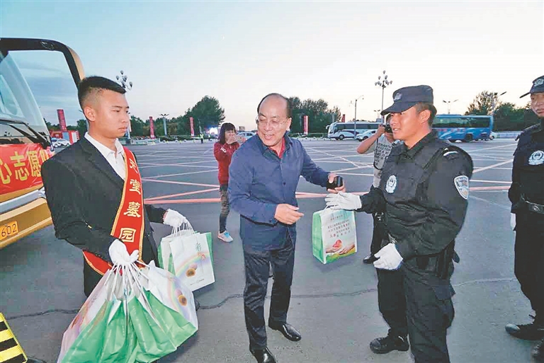 马鑫为央视中秋晚会大庆分会场的安保警察送月饼。