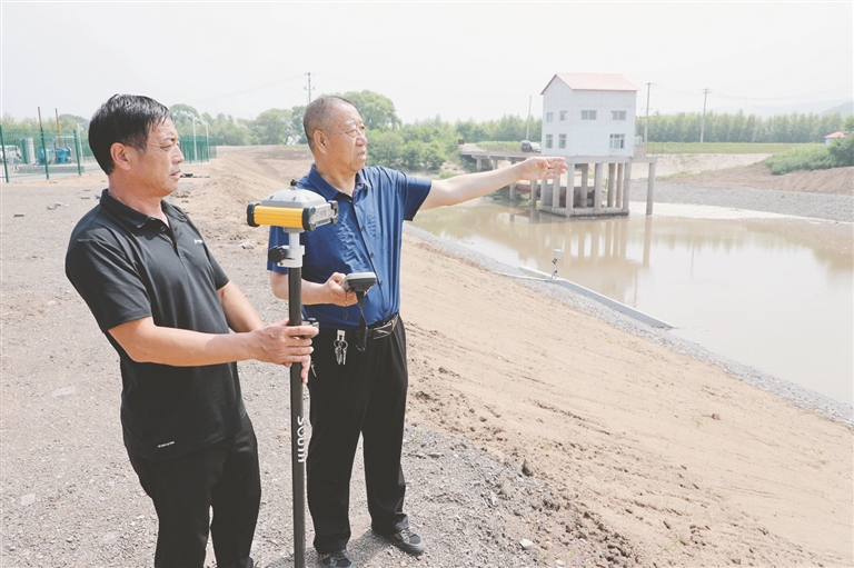 郭永庆(右)与同事在进行巡堤工作。宋洋摄