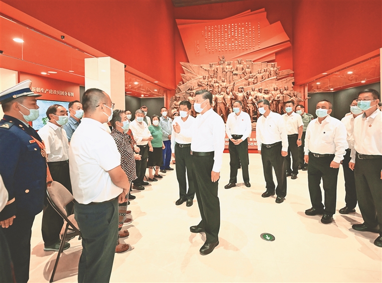 7月12日至15日,中共中央总书记、国家主席、中央军委主席习近平在新疆考察。这是13日下午,习近平在新疆生产建设兵团八师石河子市新疆兵团军垦博物馆,会见兵团老中青三代建设者代表。新华社记者 李学仁摄