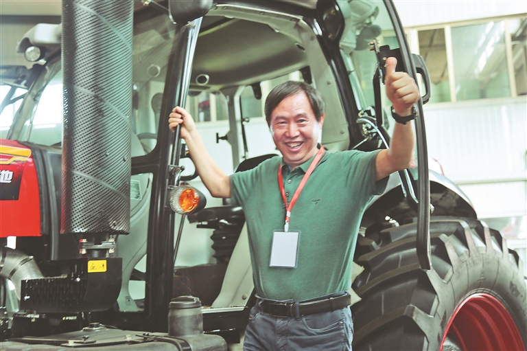 从新研发的拖拉机上下来仍不忘竖起大拇指说:“为它点赞!”