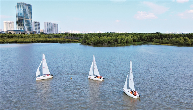 连日来,哈尔滨市职工帆船帆板运动协会的40余名队员,在一湖三岛湿地的训练基地中进行新帆船的驾乘训练,为相关帆船比赛做准备。本报记者 张澍摄