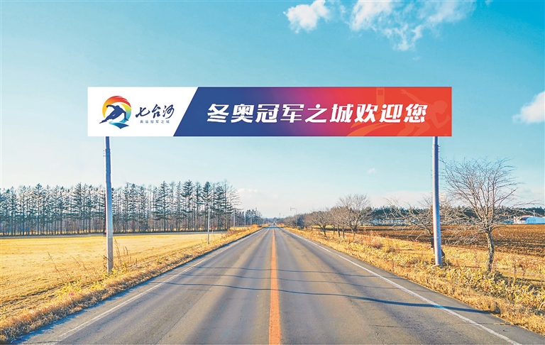 城市形象标志在冰场上的应用效果图。