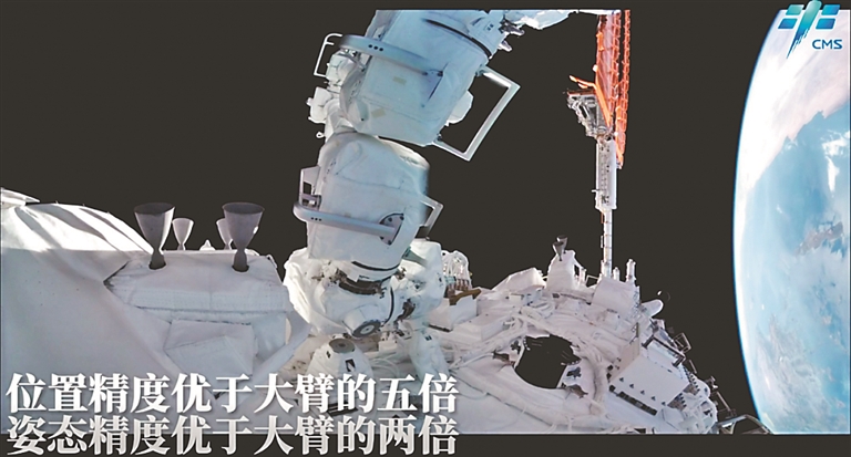 作为空间站“明星”部件之一,相比于大机械臂,小机械臂有哪些优势?据哈工大相关科研团队负责同志介绍,问天实验舱的小机械臂长约5米,最大负载3吨,相比于核心舱配备的大机械臂,小机械臂更加精巧,它采用7自由度对称构型,两端各有一个末端作用器,配合问天实验舱表面的“脚印”,可实现舱体不同位置的爬行。同时,问天实验舱小机械臂末端定位精度更高,位置精度优于大机械臂5倍,姿态精度优于大机械臂2倍,相较于大机械臂,它可用于完成精度要求更高的科学载荷安装、拆卸等任务。