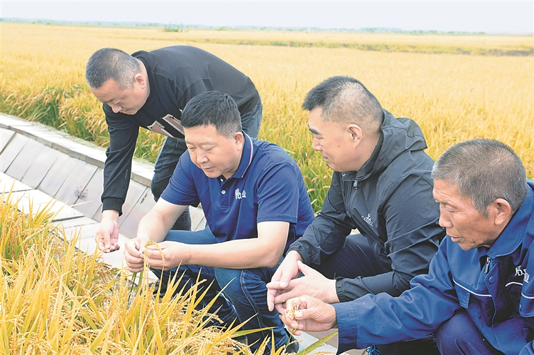 袁胜海(左二)查看水稻长势。李翔宇 王升宇摄