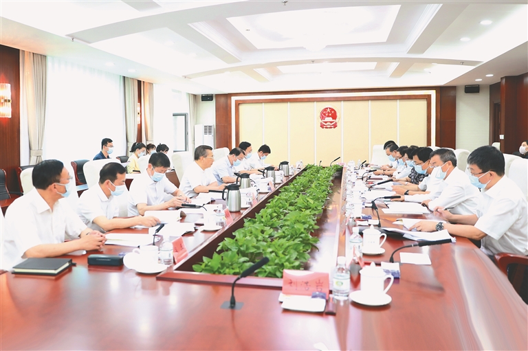 8月17日,省人大常委会召开年度重点工作任务推进落实领导小组会议,听取机关“四个体系”运行实施情况和各部门“五合一”台账任务推进落实情况的汇报,研究部署下步工作。原晨峰摄