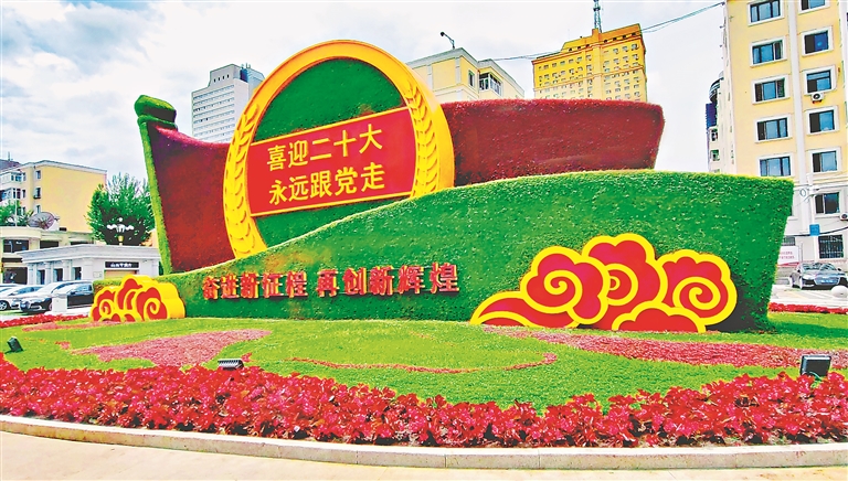 喜迎盛会的鲜明主题、磅礴大气的造型花坛、五彩斑斓的美丽花海……为迎接党的二十大胜利召开,哈尔滨市精心打造多处新颖别致的以“喜迎二十大,永远跟党走”“社会主义核心价值观”“红船精神”等为主题的花坛、绿地景观造型,为城市增添了靓丽色彩。