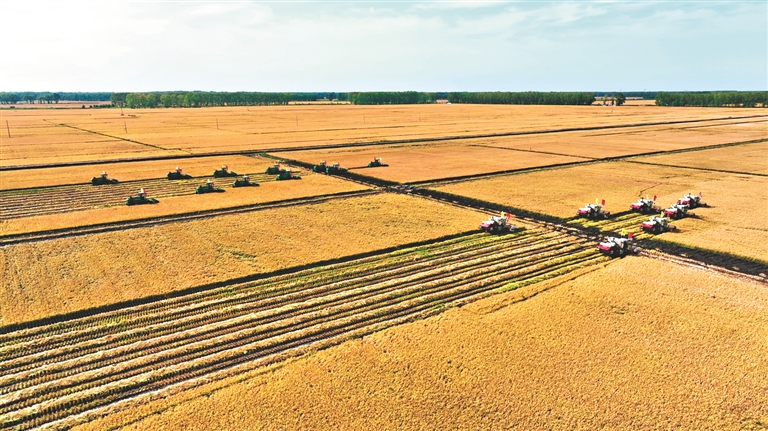近年来,军川农场有限公司深入实施北大荒集团“藏粮于地、藏粮于技”战略,牢固树立抗灾抢收意识,充分释放现有42台割晒农机具、865台水稻收割机机械力量,全面加速秋收进度,为下一步标准化格田改造、粪肥还田及秋整地工作争取宝贵时间,并采用割晒与直收相结合、分段收获的方式在10月15日前全面完成53.6万亩水稻作物收获。
