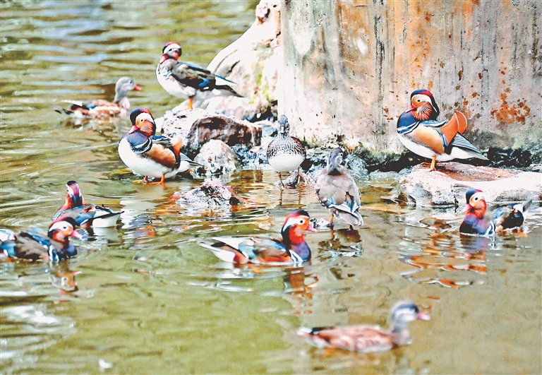 在人们细心呵护下,小鸳鸯个个膘肥体壮、羽毛丰满。这些野生鸳鸯20多年前便落户兆麟公园,每年春初飞来,秋末飞走,从不爽约。鸳鸯家族一代代地繁衍、壮大,数量从最初的几只发展到现在的两百余只,成为了园内一道独特风景,也“绘制”了一幅人与自然和谐相处的美丽画卷。本报记者 苏强摄