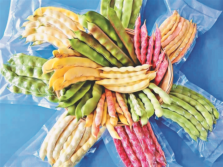 冯国军研究油豆角近30年,他和他的科研团队已收集油豆角菜豆种质资源达数百份,育成新品种21个,申报品种保护权6个。