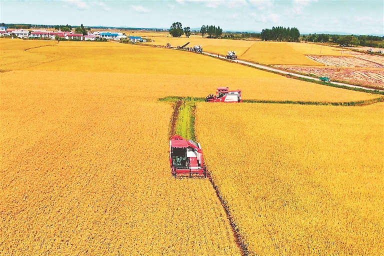 当天,2022延寿开镰节在位于安山乡的延寿县嘉禾春天农业种植专业合作社万亩稻田举行。9台大型收割机排成“人”字形缓缓前行,机声轰鸣中,迎来秋日金灿灿的收获。合作社负责人宋志忠告诉记者,合作社托管的1.7万亩稻田今年丰产丰收,亩产达到近1300斤。伴随延寿大米品牌影响力的逐年提升,托管农户的原粮价格又有提高,实现了丰产增收。