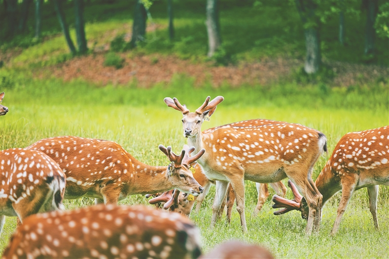 本报讯(见习记者唐海兵)金秋九月,密山市兴凯湖宏鹿实业有限公司的百余头梅花鹿悠闲自得地徜徉于草地间,绿色生态美景吸引无数游人前往。