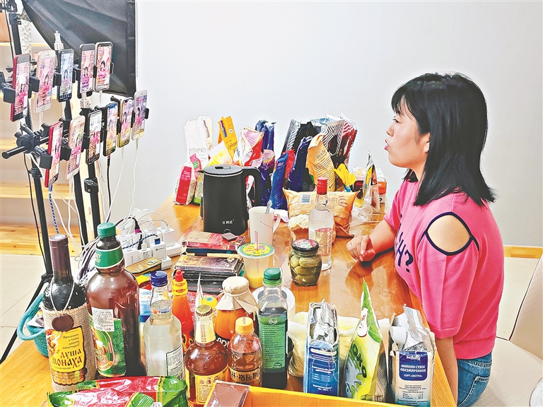 “朋友们晚上好,今天我要给大家介绍的是一款俄罗斯巧克力夹心糖,大家看一下,这款国人称为紫皮糖的糖果……”走进绥芬河市罗斯帝国跨境电商直播基地,十余间装饰一新的独立直播间里,主播们都在介绍着琳琅满目的俄罗斯食品,糖果、零食、蜂蜜、红酒……镜头另一侧,摄影团队正在帮助主播们完成视频的制作。依托省级罗斯帝国跨境电商直播共享示范基地、跨境电商创客孵化基地等载体平台,绥芬河片区打造了集网络直播区、电商分销区、俄货选品区、物流仓储区、生活服务区为一体的电商产业集结地,整合百余家入驻商家,拥有共享直播间、大型多场景直播间二十余个,参与直播的商品数达15683种。在2022绥芬河“绥易购”国际电商嘉年华当天,线上直播间观看总人数近300万人次,直接带动各电商企业网络销售额突破1000万元。目前,绥芬河自贸片区已培育电商经营主体达到8367家,线上俄罗斯商品年销售额超10亿元,年快递发寄量达3000余万件,多年保持黑龙江省县域首位。