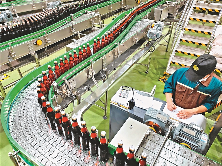 推动传统制造业数字化转型,使用工业互联网、智能制造技术,提升制造业数字化、网络化、智能化发展水平。在绥芬河综合保税区辛巴赫精酿啤酒数字化车间,建立起数字化生产系统MES,配置生产线1条,主要功能包括酵母扩培、酵母回收、糖化、发酵等,建设自动化灌装包装车间,配置灌装包装线1条,可实现年产1万吨精酿啤酒。数字车间建设成功规范了生产工艺及流程,极大地提高了生产效率和良品产出率。