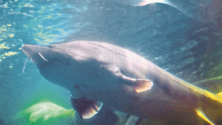 “鲟鳇鱼身上没有鳞片,背部呈棕灰色或褐色,腹部银白。达氏鳇最大可长到1000公斤,身体长达6米,是淡水鱼中寿命最长、体型最大的,有‘淡水鱼之王’之称。施氏鲟较达氏鳇体格偏小,但也能达到100公斤以上。”马波向记者介绍。