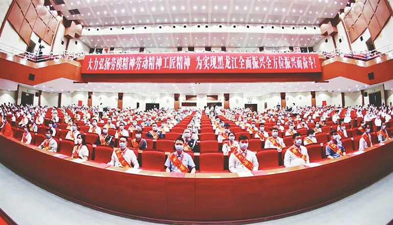 黑龙江省第十三届劳动模范表彰大会现场。 本报记者 邵国良 郭俊峰摄