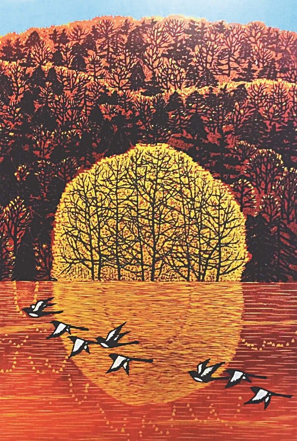 仲秋,阳光温和,天空瓦蓝瓦蓝的,徐徐清风中依然含着几分暖意,此时,广阔的稻田已由浓绿转变为黄绿相间,举目远望,别有一番壮阔之美。随省作家协会采风团一行十五人,乘坐敞开式有轨电车驶入浩瀚的稻海。眼前令人震撼的景色,让“少见多怪”且又“多情善感”的作家诗人们,发出阵阵惊呼和感叹。不远处,在万亩稻田与小河之间,有一座绿树林荫的小巧岛屿,小岛的东端矗立着一块巨大的红色牌子,上面很艺术地排列着几个大字:“八五六农场蟹稻生态种养基地“。