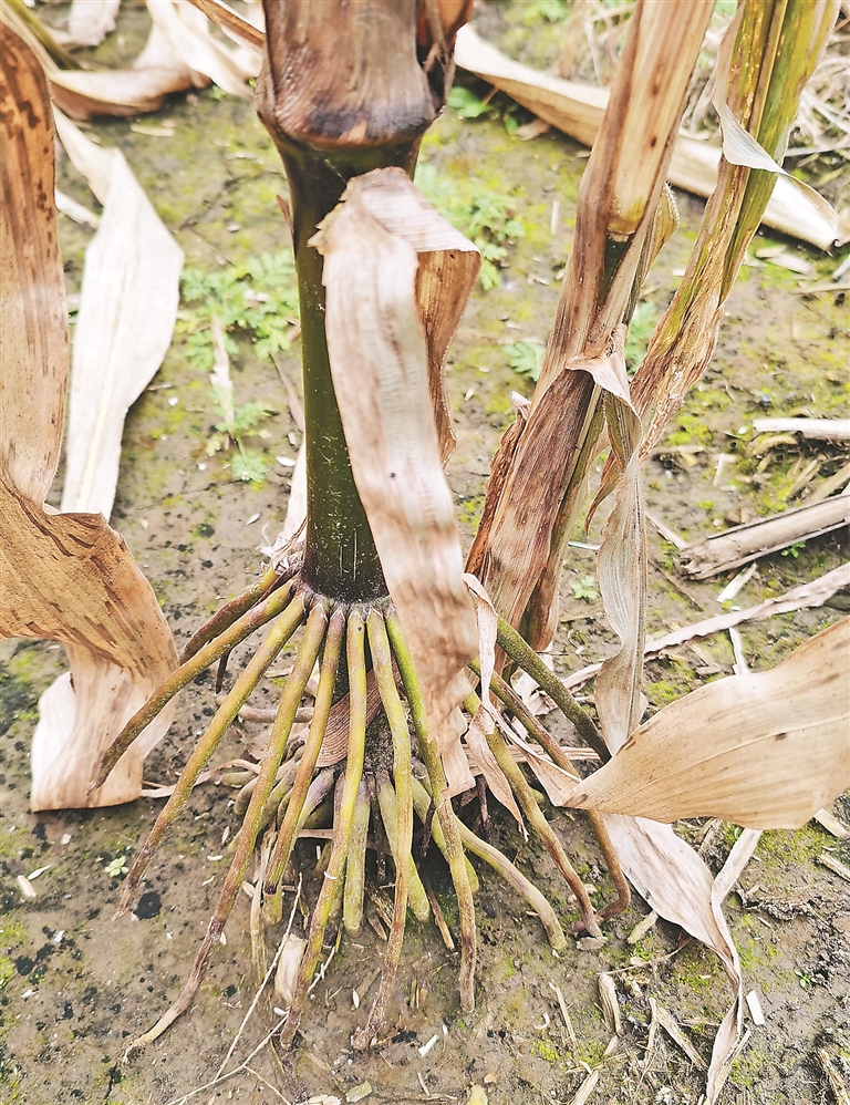 在永源镇南岗村,玉米作物一片丰收景象。记者跟随李春雨来到一处玉米地,这里是采用归行机处理玉米秸秆还田的地块。据了解,今年春季时,合作社农机手驾驶归行机械,将该地块玉米叶等归成一行,然后在一侧种植玉米,归行的玉米秸秆等物质随着时间流逝,逐渐腐蚀与土地融为一体。“这种模式能保墒抗旱,同时玉米作物根系发达,能抗台风侵袭。”李雨春说,这种模式也适合土地规模小的农户。记者看到,这里玉米作物根系十分粗壮、深深植入土地中,李春雨演示晃动秸秆,秸秆没有出现松动。
