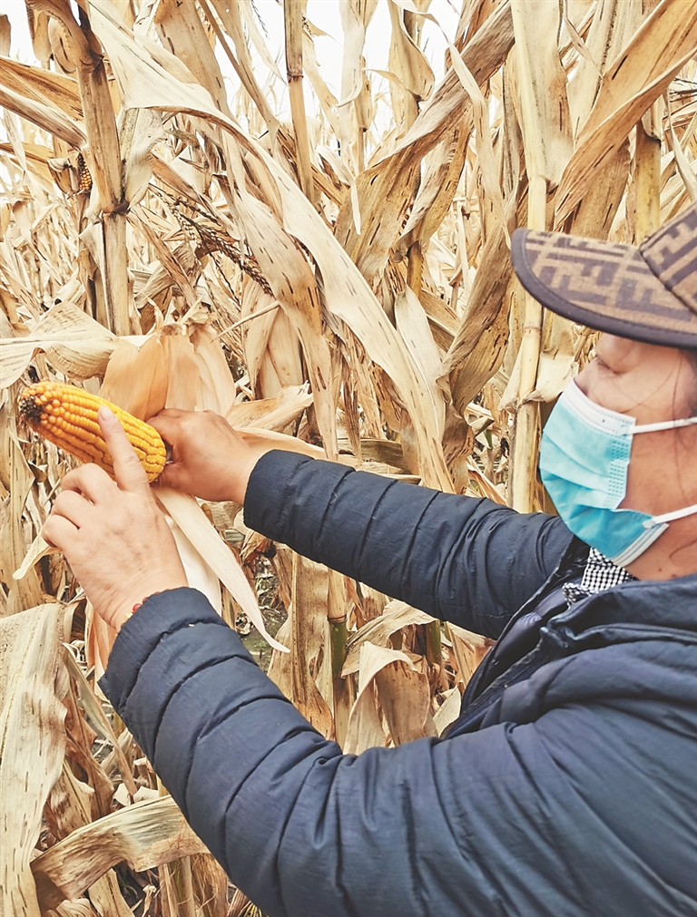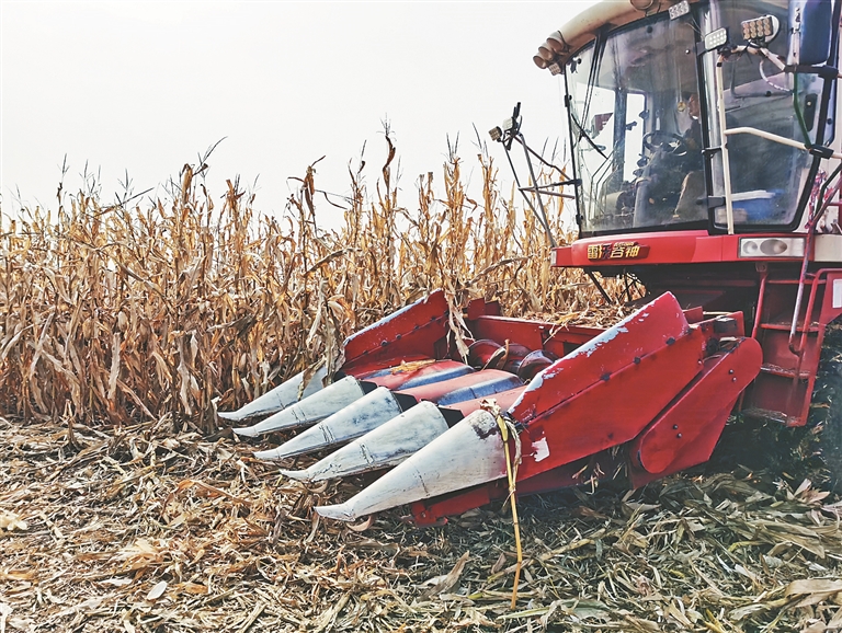 而附近常规种植的地块,玉米作物根系明显单薄。秸秆还田,既可提升土壤肥力,还能增加农户的收益。南岗村村民孟繁伟正在收获自己的100亩玉米作物。他对记者说:“我的地让春雨合作社托管已经7年了,今年合作社采用新型免耕机一次性播种施肥,等苗长出后,合作社又用深松机在苗两侧松地,实现秸秆还田,土地肥力足,还抗旱,产量提高不少,今年亩产能达到2000斤。”