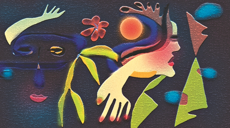 自从有了你,/压缩至包里的大把表情,/我就把情感的开关拧紧,/让符号替代真情与实意。/渐渐的,除了龇牙,/只会傻笑,/朋友们说,/症状似老年痴呆。