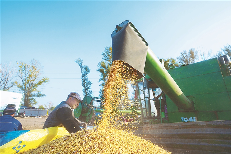 “我们村今年有1500亩地托管给了北大荒集团佳木斯农服,15亩地能打出来6000斤大豆,这账算起来,真让人高兴。咱这从种到收,也跟着学到不少,种了一辈子地,真是开了眼界。”腰营子村党支部书记韩文山说。