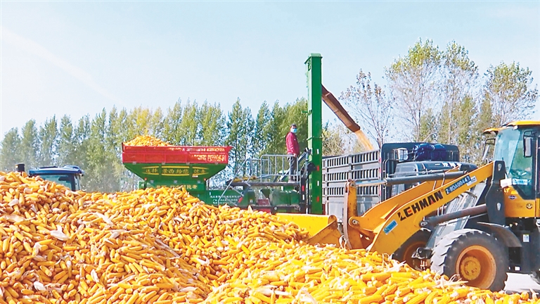再看荣春村晾晒场这边,农民们正在把刚从地头拉运回来的玉米进行脱粒,将玉米粒装进一辆辆运粮车。看着运粮车上载满的玉米,荣春村村民朱振江脸上满是喜悦:“我今年种了300多亩地玉米,预计每垧地能收12吨左右,我种的玉米种子品种优良,田间管理措施得当,长得也好,收成非常喜人,预计一垧地能收入1万元左右。”