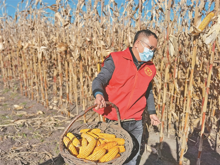 志愿者助农秋收,确保颗粒归仓。